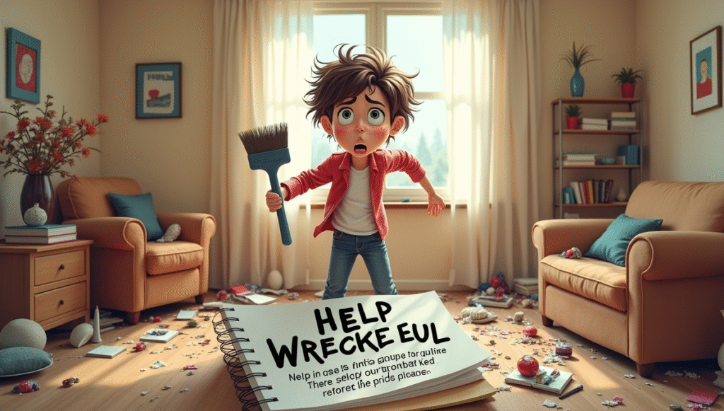 Help I Wrecked My House! If you have ever shouted these words, you are not alone. Many people accidentally break or damage things in their homes, from spilled drinks to broken furniture or walls. It can feel scary and stressful, but the good news is that most problems can be fixed if you act quickly. The first thing to do is stay calm and look at the damage carefully. Rushing or panicking can make things worse. Next, gather the things you need, like cleaning tools, tape, or glue, depending on the type of damage. You can also call a professional if the problem is serious, like water damage or a broken wall. Taking small, careful steps will help you fix the mess and make your home safe again.